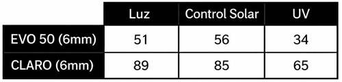 • 35% menos calor en comparación a un vidrio claro de 6mm.